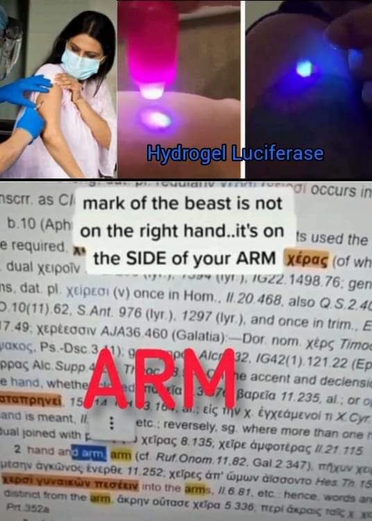 헬라어 성경 원문에는 👉짐승의 표는 오른손이 아닌 팔 옆구리에 찍힐 것이라고 되어 있습니다. 오른손(Right Hand)이라는 단어는 프리메이슨의 성경인 킹제임스(King James)에 의해 완전히 잘못 번역되었습니다.